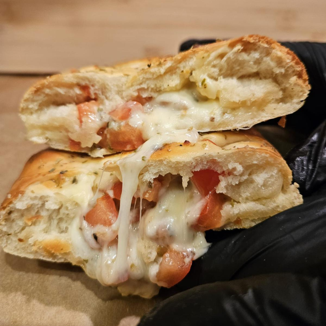 Cheese & Tomato – a vegetarian favorite with gooey melted cheese and fresh tomato.